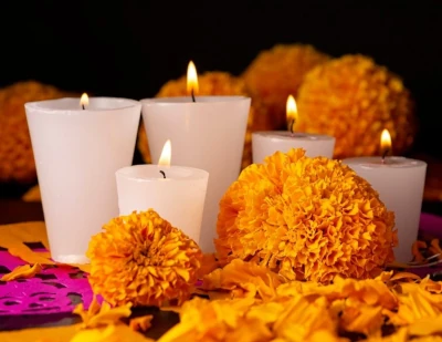 Among the most common and symbolically charged elements of these altars is the cempasúchil (marigold) flower. Native to Mexico, this flower blooms in autumn after the rainy season, and its life cycle coincides with the Día de Muertos celebrations. The word cempasúchil has pre-Hispanic origins, derived from the Nahuatl words cempoal, meaning “twenty,” and xóchitl, meaning “flower,” often interpreted as “the flower of twenty petals.” The Aztecs believed that its intense orange and yellow petals captured the rays of the sun and that its strong fragrance could attract even the dead. For this reason, pathways of cempasúchil petals are traditionally laid out, as their vivid colors and powerful aroma are believed to guide the souls of the deceased back to their altars.