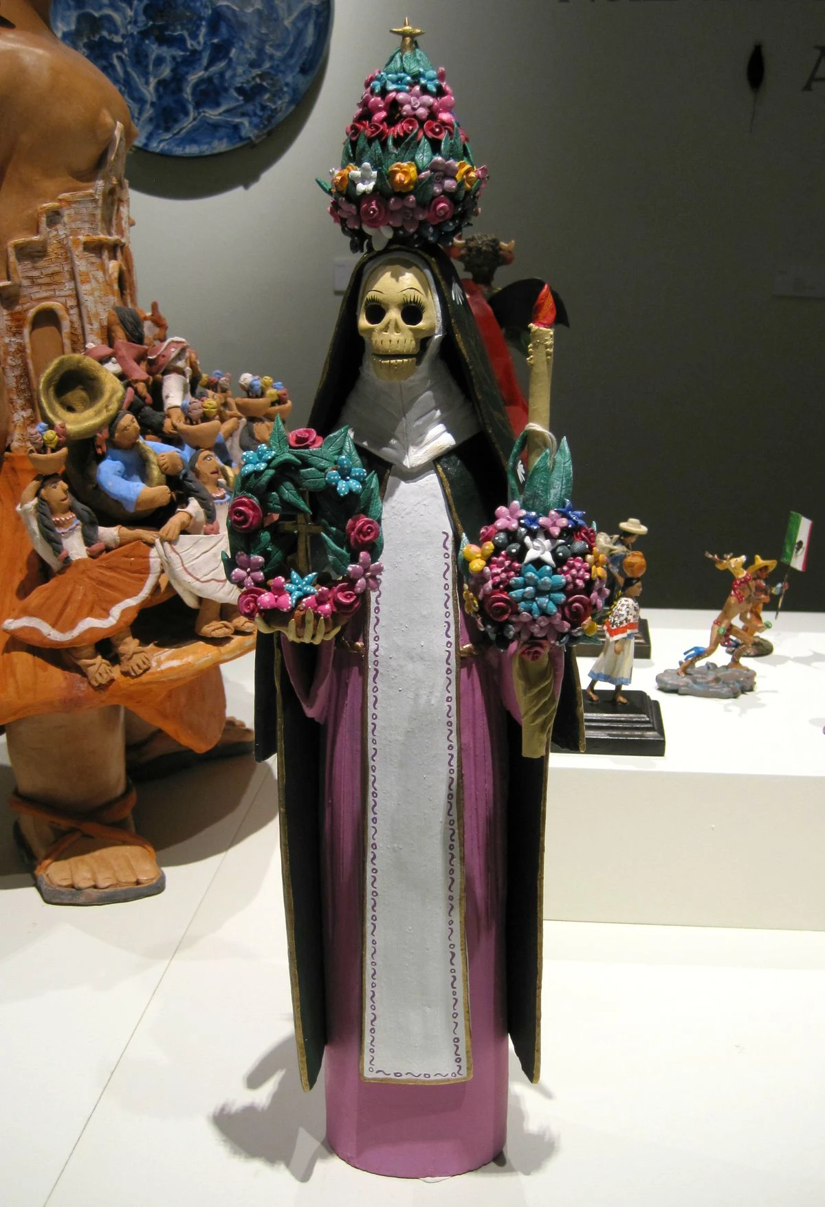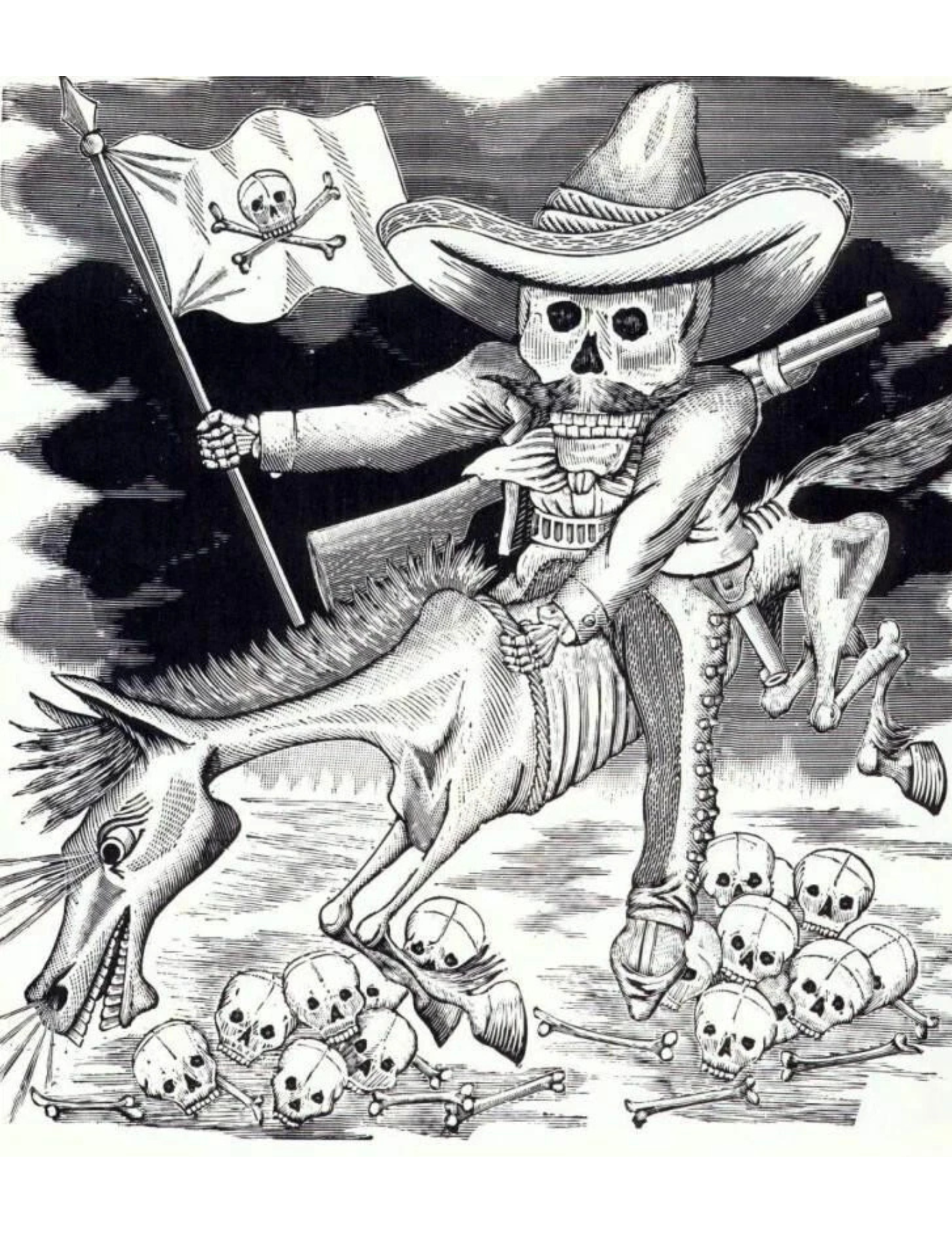 Within current popular art, death is presented without the majestic grandeur characteristic of pre-Hispanic sculptures or the tragic premonition associated with its Spanish equivalents. Unlike the solemnity found in pre-Hispanic and Spanish traditions, Mexican popular art offers a conception of death nourished by satire, provoking an ironic smile. Here, death is no longer taken seriously; rather, it is given human traits, becoming a friend or “compadre” with whom one can play jokes. Death in Mexican Popular Art. Elektra and Tonatiuh Gutiérrez, Artes de México, Number 145, 1971. Page. 75